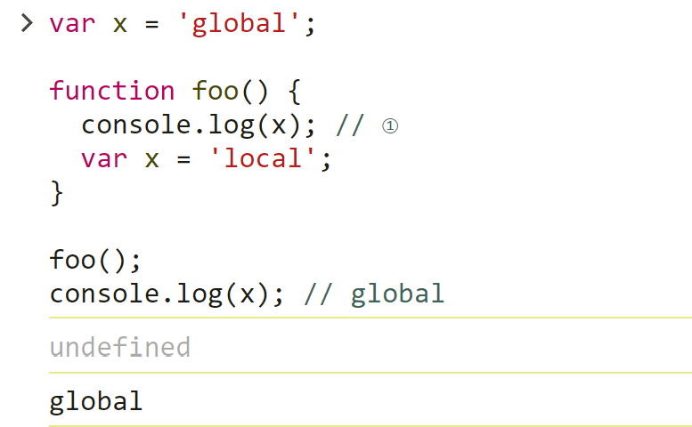 console.log(x); // ①